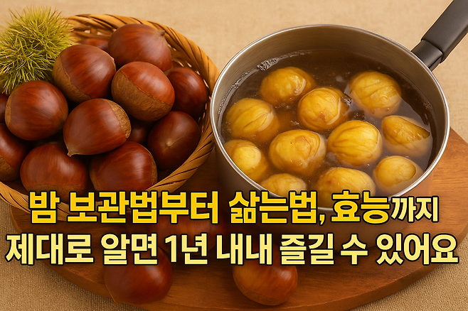 가을이면 빠질 수 없는 제철 식재료 중 하나가 바로 밤입니다. 영양이 풍부하고 맛도 좋은 밤은 단순한 간식을 넘어 건강 식품으로도 인기가 많은데요. 하지만 잘못 보관하면 금세 벌레가 생기거나 곰팡이가 피기도 하죠. 오늘은 밤의 효능부터 보관법, 삶는법, 찌는 법까지 누구나 쉽게 따라할 수 있도록 자세히 정리해드립니다.