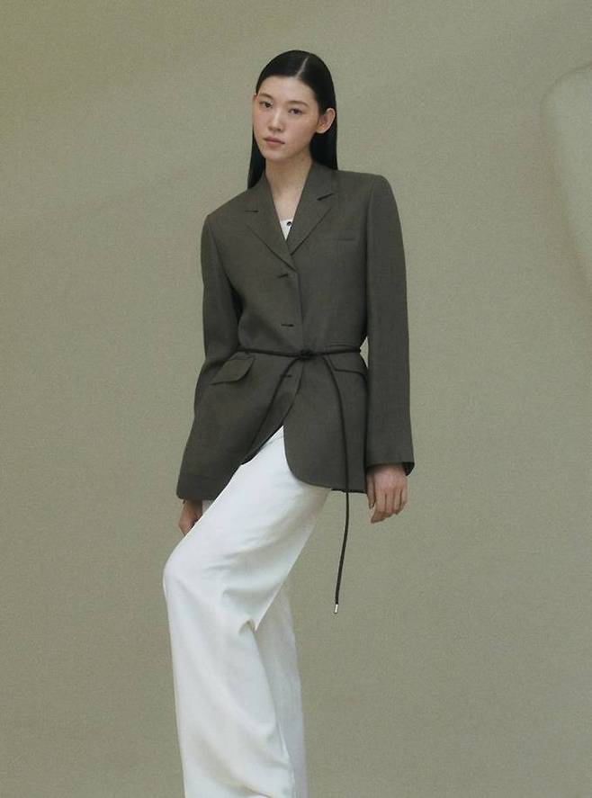 '쉬즈미스'의 쓰리피스 싱글 린넨 재킷은 100% 린넨 소재를 사용해 통기성이 뛰어나며 군더더기 없이 떨어지는 실루엣으로 고급스럽고 세련된 분위기를 연출한다.