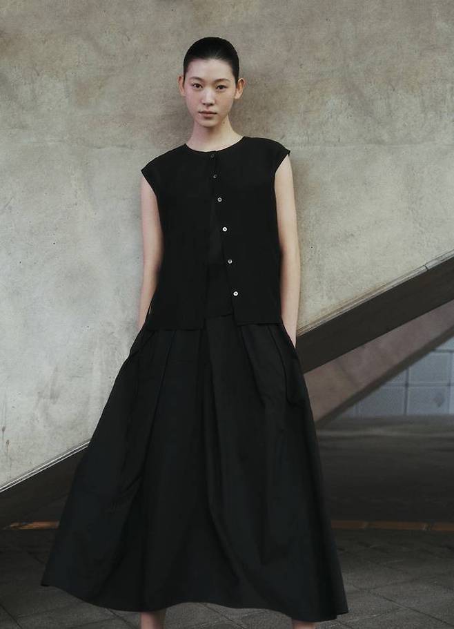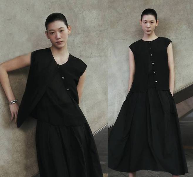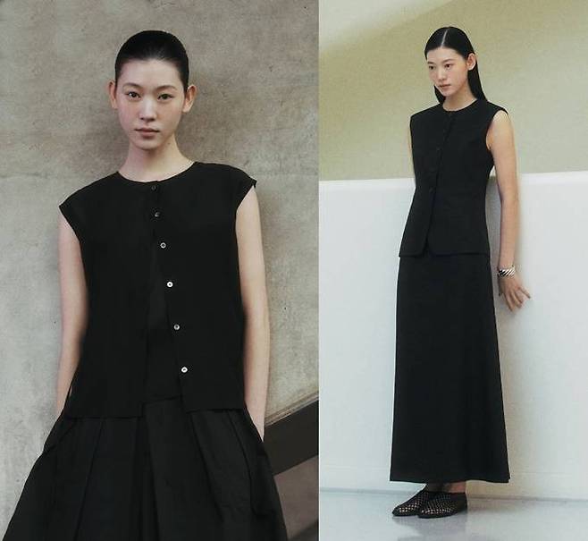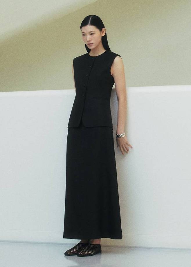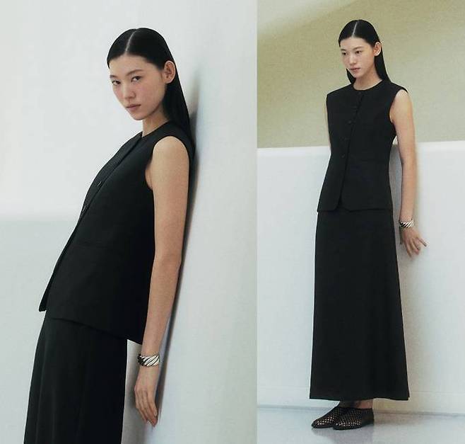 베스트와 와이드 팬츠를 매치하면 은근히 섹시한 무드의 클래식한 테일러링, 롱스커트와 함께하면 시크하면서 여성스러운 매력적인 실루엣을 연출한다.