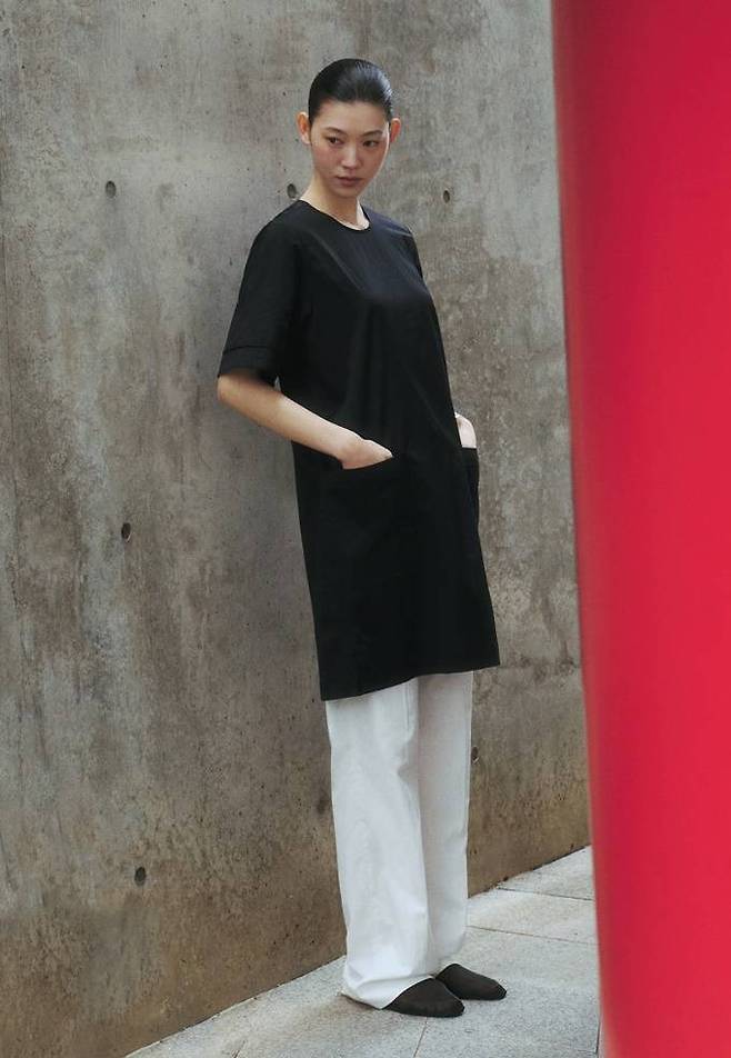 특히 '쉬즈미스' 반팔 원피스는 미디 기장으로 팬츠와 함께하면 '팬츠 더하기 원피스' 스타일링을 즐길수 있다.