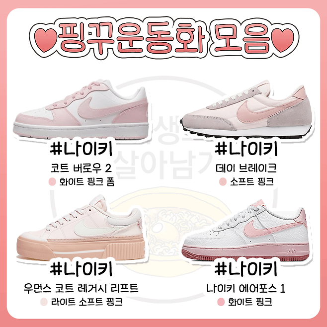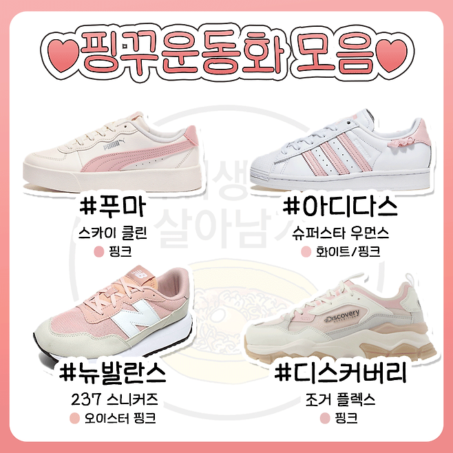 어디든 잘 어울리는 봄 찰떡 핑크색 운동화 추천서