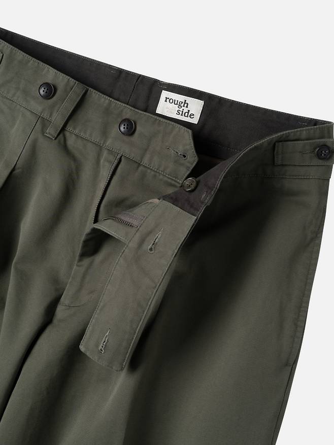 상의와 이어지는 허벅지 라인은 여유롭고 밑단은 슬림한 테이퍼드 핏이다. 거기에 러프사이드답게 빈티지 의류에서 볼 수 있는 어드저스트 탭이나 뒷주머니의 입술 주머니와 같은 디테일 있어 단독으로 입어도 심심하지 않다. 재킷을 입기 어려운 여름에도 반팔 티셔츠와 입을 수 있으니 사계절용이라 할 수 있겠다. 상하의 모두 기본 색상이라고 할 수 있는 블랙, 네이비부터 차콜, 다크 올리브까지 여러 색상으로 출시된다. 구매는 여기(https://tinyurl.com/8nuvytvw)에서.