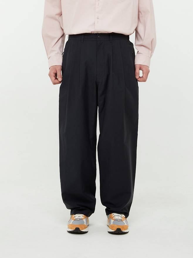 바지 전면에는 두 개의 턱이 있다. 이 턱의 역할이 중요하다. 바지 통이 넓을수록 허리춤에서 접히는 부분이 생기기 때문에 턱이 필수일 테고 또한 이 턱이 단정한 느낌을 준다. 넉넉한 핏이 부담스럽다면 단정한 구두나 단화를 매치해 보자. 가격도 합리적이어서 셋업 입문용으로 좋겠다. 구매는 여기(https://tinyurl.com/7rfjv9v6)에서.
