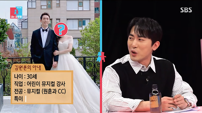 아내에 대한 이야기는 지난 4월 방송된 SBS ‘동상이몽 시즌2-너는 내 운명’에서 밝혔죠! 김원훈은 이날 당시 아내의 신상(?)에 대해 방송 최초로 공개했어요!