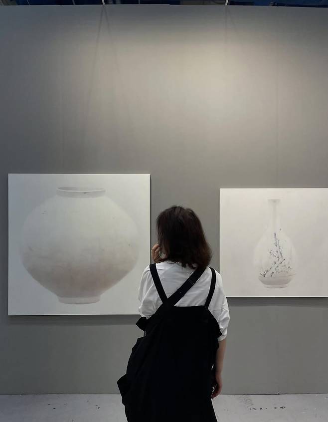 서울 최대 아트페어 '키아프'와 '프리즈'를 찾은 그녀는, 화려한 여배우의 모습 대신, 미술학도처럼 편안하고 수수한 '갤러리룩'을 선보였다.