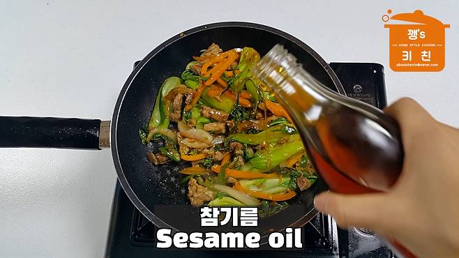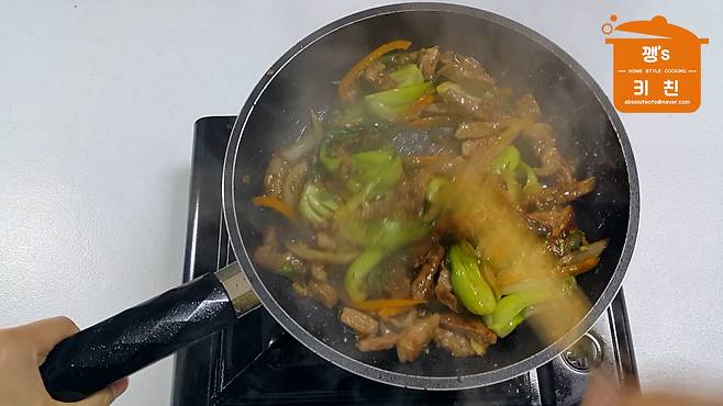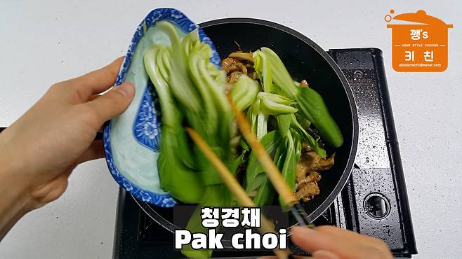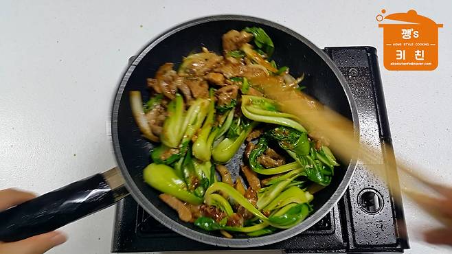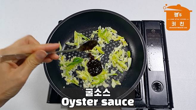 굴소스 2T, 맛술 1T, 양파, 청경채,