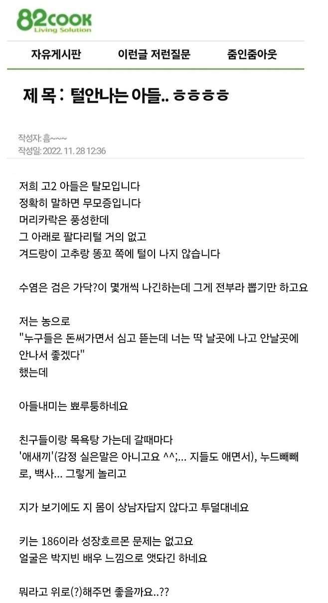 털이 안 난다고 투덜대는 남자 고등학생.jpg