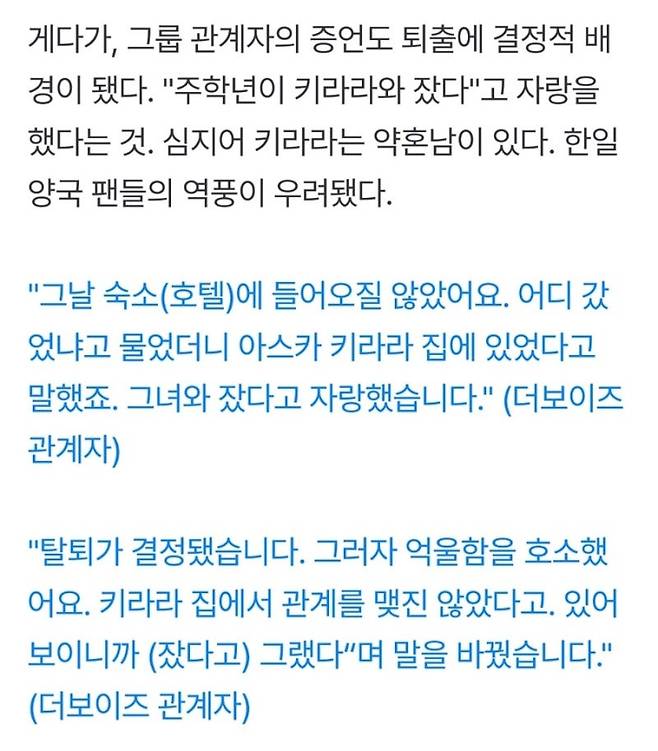 논란이 거세지자 주학년 씨의 소속사는 “AV 배우 출신과의 만남이 팀 이미지에 심각한 타격을 줬으며, 팀 활동이 불가능할 정도”라고 밝혔습니다. 아이돌 그룹, 특히 남성 아이돌의 주 팬층이 10대와 20대 여성이라는 점을 감안할 때, 이번 논란이 팬심에 미치는 영향은 상당할 것으로 보입니다.