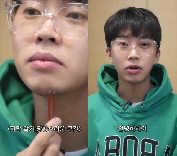 턱수염을 손으로 만지며 쓸더니 "지금 턱수염을 뽑는 ASMR을 해보겠습니다. 한 500개정도 뽑아야 될 것 같아요. 시작하겠습니다"라고 말했죠.