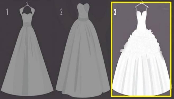 방법은 간단합니다. 제시된 그림 속에서 가장 매력적이라고 생각이 드는, 마음에 드는 드레스를 고르기만 하면 됩니다.
