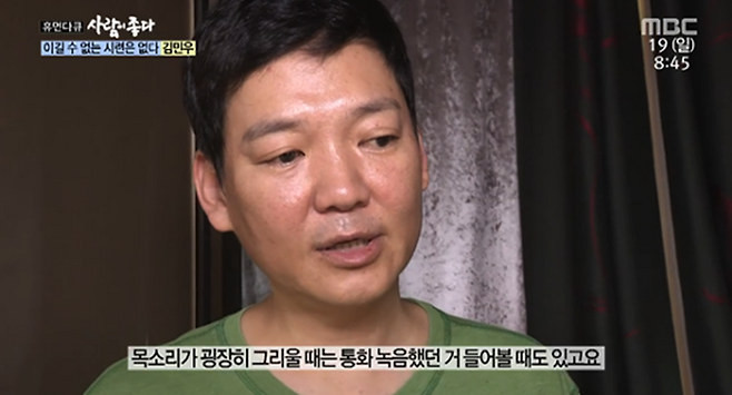 때문에 김민우의 아내는 입원한지 단 일주일만에 세상을 떠나고 말았습니다. 김민우는 이후 MBC '사람이 좋다'에 출연해 '아내의 중환자실에 매달려 있는 약물, 주사만 해도 20개였다. 의식이 없다고 해도 얼마나 힘들까 싶었다.'라며 당시를 회상했는데요. '그리울 땐 통화 녹음한 걸 들어볼 때도 있다. 주로 장 보는 얘기다. 내가 일이 힘들어도 지금껏 잘 올 수 있었던 건 든든한 동반자 아내 덕분이었다.'라며 세상을 떠난 아내에 대한 고마움과 안타까움을 전했습니다.