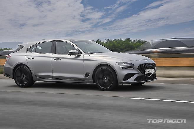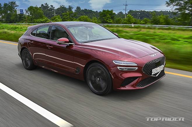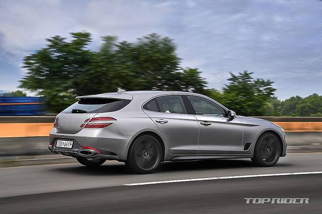낮고 안정적인 시트포지션이나 탄탄한 주행감각은 국산차 중에서는 여전히 최상급이다. 하지만 G70 세단과 비교시 서스펜션 셋업의 변화가 확인되는데, 단단함을 덜어내고 부드러움을 강조했다. 일상주행에서는 조금 더 편안한데, 고속과 코너링에서는 마이너스 요인이다.