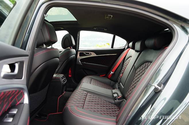 시승차는 스포츠 패키지와 스포츠 디자인 셀렉션, 옵션 패키지 3종이 추가된 2WD 모델이다. 다크 크롬 외장, 보디컬러 디퓨저, 듀얼 머플러를 비롯해 스포츠 전용 19인치 휠, 전자제어 서스펜션, 브렘보 브레이크, LSD, 선루프가 더해진 5600만원(옵션 1290만원) 사양이다.
