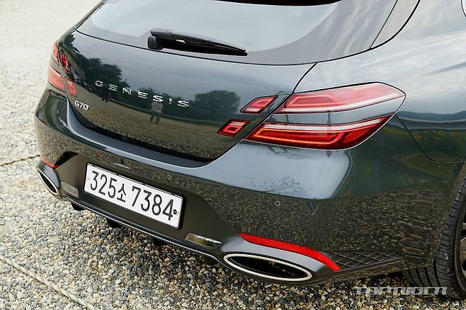 디자인 변화는 후면부에 집중됐다. 트렁크 도어에 추가된 미등은 사진으로 보는 것만큼 이상하지 않다. 스포일러 아래 더해진 보조제동등과 함께 G70 슈팅브레이크만의 분위기를 연출한다. 후방 카메라 렌즈가 리어범퍼 중앙, 번호판 상단부 패널에 위치한 점은 독특하다.