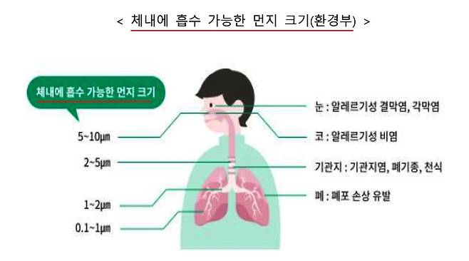 | ▲ 송홧가루가 폐 기능 저하를 가져오며, 빗방울과 대기 오염물질에 의해 폐로 흡입됨을 밝히고 있다. |