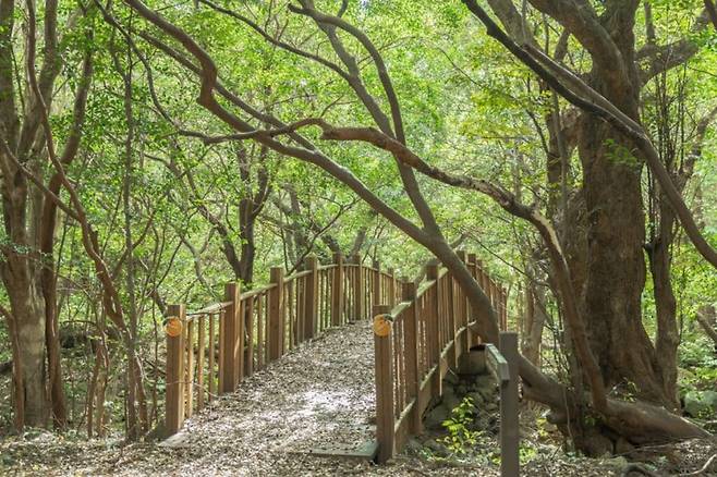 돌과 나무가 우거진 신비로운 숲길에서 대자연과 하나 되는 감각을 느낄 수 있을 것이다.