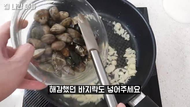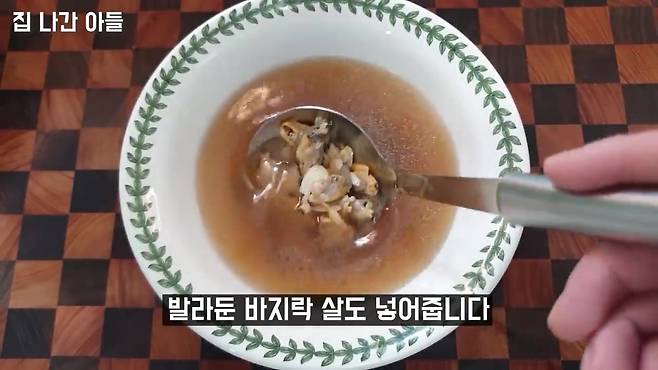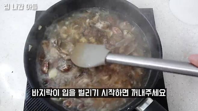 맛술 1스푼 + 간장 약간 + 소금 약간 → 끓이다가 바지락 입 벌리면 꺼냄