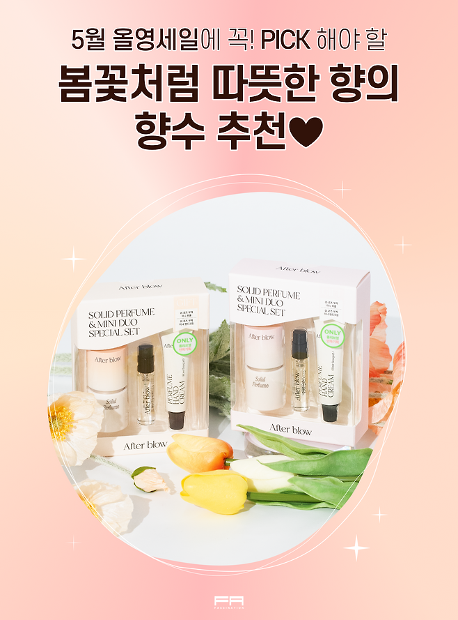 지금 올리브영에서는애프터 블로우 솔리드 퍼퓸 기획 세트가20% 할인가로 판매 중이라고 해요!퍼퓸 한 개 가격으로미니 퍼퓸과 미니 핸드크림까지향기폭탄 알짜배기 구성이니봄이 끝나기 전 놓치지 말고 GET 하세요!!૮꒰˶ ・֊・ ˶꒱ა ♥