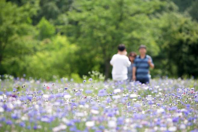 이럴 때 만나볼 수 있는 꽃이 바로 수레국화다. '행복감'이라는 꽃말을 지닌 수레국화는 늦봄을 즐기는 상춘객들에게 시원한 색으로 초여름의 인사를 건넨다.
