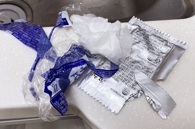 이럴 때 물티슈 뚜껑으로 쓰레기 수거함 만들어 작은 쓰레기들을 버리면 아주 편리해지더라고요. 쓰레기가 다 차면 봉지만 빼서 그대로 쓰레기통에 버리시면 되고요. 다른 비닐봉지 끼워두면 평생 재사용이 가능합니다. 물티슈 뚜껑 그냥 버리기 아까울 때 이렇게 주방 쓰레기 수거함으로 활용해 보세요^^*