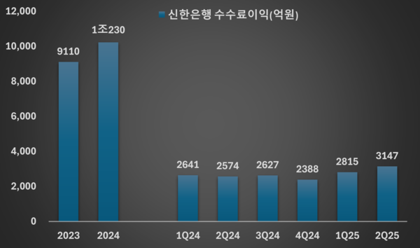 8일 금융권에 따르면 신한은행의 2분기 수수료이익은 3147억원으로 1분기(2815억원) 대비 11.8%, 작년 동기(2574억원)보다 22.3% 증가했다. 펀드·방카·신탁수수료가 꾸준히 성장세를 보이는 가운데, 투자금융수수료이익이 늘고 있다.