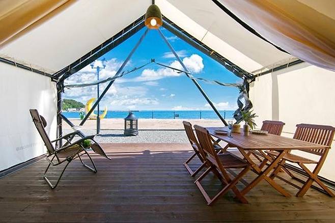 넓은 규모로 이루어진 글램핑장으로 완벽한 오션뷰를 갖추고 있는데요.