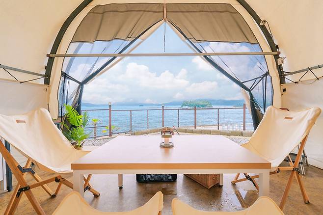 경남 사천의 '럭셔리 비토섬 제이글램핑'은 비토섬에 있는 오션뷰 글램핑장입니다.