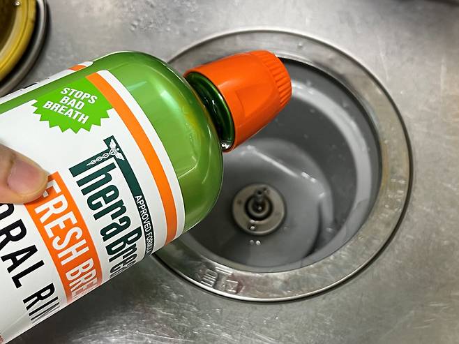 그래도 배수구 냄새가 걱정된다면 구강 청결제를 활용해 보세요. 구강 청결제는 항균 효과가 뛰어나 배수구 내 세균 번식을 억제하고 냄새를 줄이는 데 도움을 줍니다.