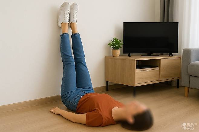 이 동작은 별다른 도구 없이 벽만 있으면 쉽게 할 수 있다. 등을 바닥에 대고 눕거나 엉덩이를 벽 가까이에 붙인 뒤, 다리를 벽을 따라 곧게 세운다. 몸이 ‘L’자 형태가 되면 된다. 이때 종아리와 허벅지 뒤가 자연스럽게 당겨지며 긴장이 풀리는 느낌을 받을 수 있다.