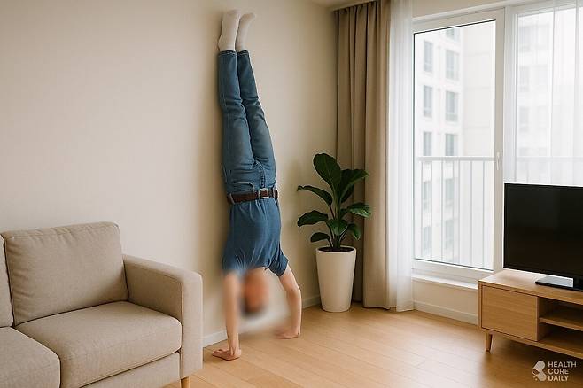 단, 처음 시도할 때는 벽을 지지대로 활용해 균형을 잡는 것이 안전하다.
