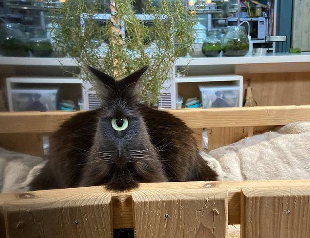 사진 속 검은 고양이는 TV 옆에 숨어 주인을 은밀히 관찰하고 있었습니다. 주인이 고개를 돌리는 순간, 눈앞에 나타난 것은 마치 괴물 같았습니다. 기이하게 일그러진 눈과 귀는 도저히 평범한 고양이라고는 생각할 수 없는 모습이었습니다.