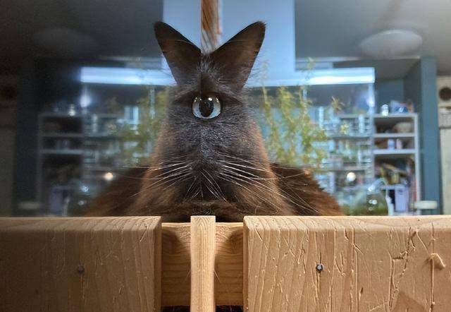 TV 화면에 비친 고양이의 모습이 실제 고양이의 일부와 어우러지면서 매우 이상한 형태로 보였던 거죠. 실제 고양이는 아래 사진처럼 너무나 사랑스러운 검은 고양이입니다.