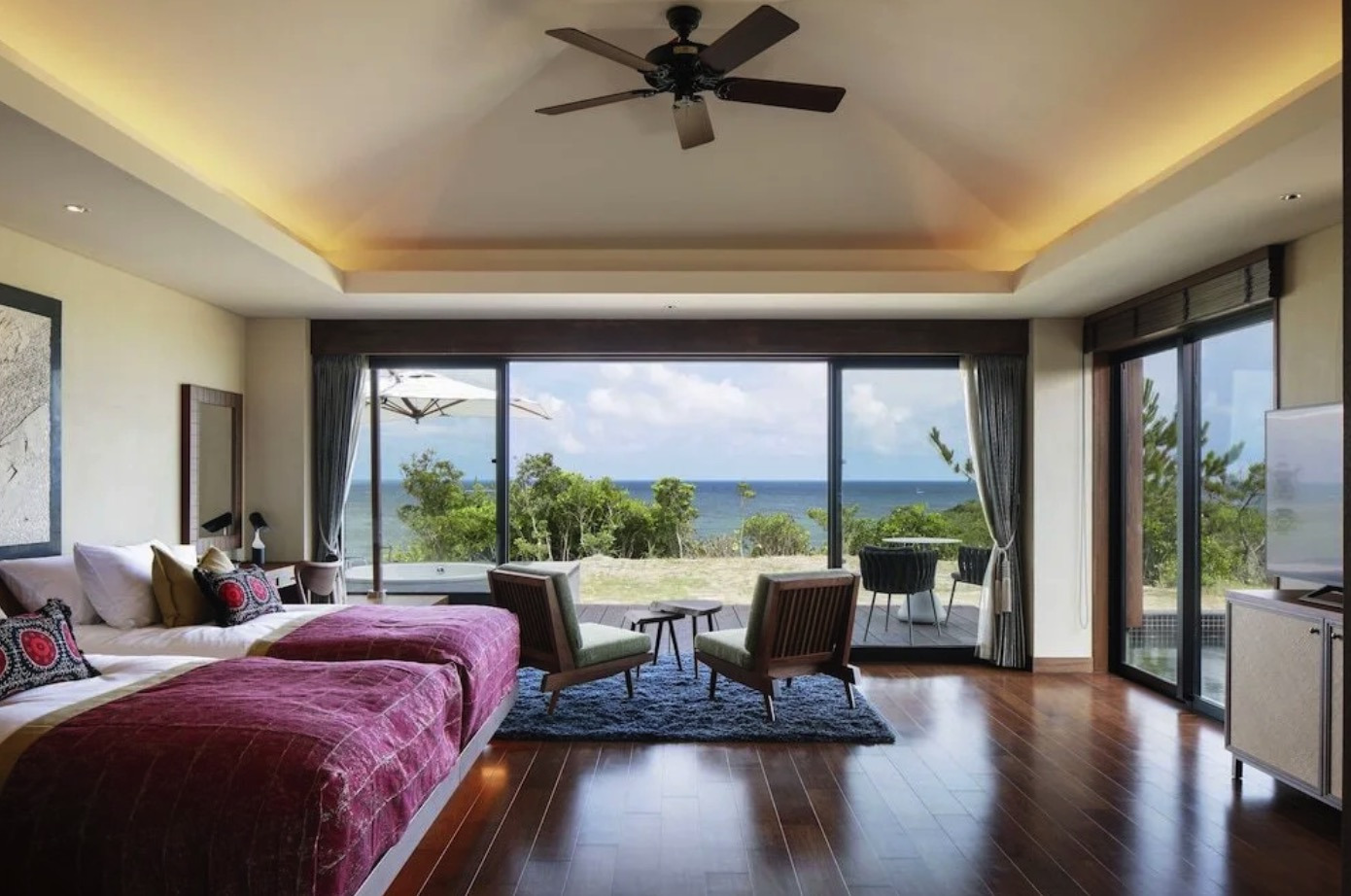 오키나와의 베스트 시즌은 장마가 끝나고 여름이다. 맑은 날씨가 많아 마치 천국 같은 절경을 볼 수 있다. 타입이 다른 5개의 수영장을 체험하거나 스파 트리트먼트로 힐링하거나 천연온천을 이용한 온천 시설에서 리프레쉬를 할 수 있다.