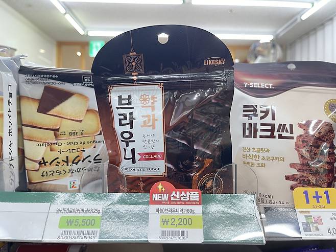 약과와 초코브라우니를 합친 제품인데 이도저도 아닌 애매한 제품이 되었어요. 브라우니를 한글로 각인시킨 점은 신선했는데 기름의 눅눅함이 실망스러워요.