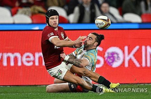 epa12252792 Darcy Graham of the Lions passes in a tackle during the Tour Match between the First Nations & Pasifika XV against the British & Irish Lions, in Melbourne, Australia, 22 July 2025. EPA/JAMES ROSS AUSTRALIA AND NEW ZEALAND OUT