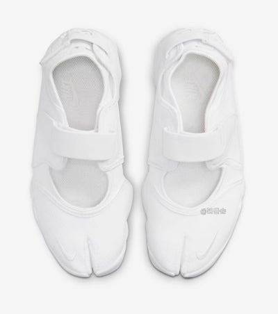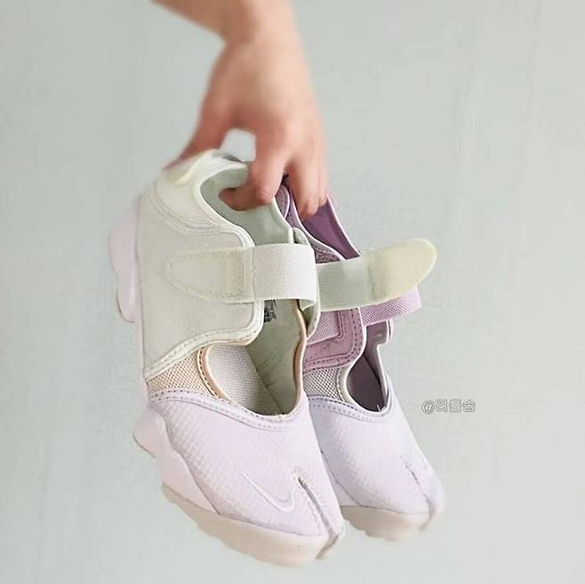 나이키 에어리프트는 처음 보면 ‘이게 뭐지?’ 싶을 정도로 독특한 디자인이 시선을 사로잡습니다. 일본의 전통 신발인 ‘타비(Tabi)’에서 영감을 받은 앞코 갈라짐 디자인은 이 신발의 가장 큰 특징이자 매력 포인트입니다. 여기에 귀여운 메리제인 슈즈의 스트랩과 러닝화의 편안함까지 더해져, 그 어떤 카테고리에도 속하지 않는 독보적인 아이덴티티를 완성했죠.