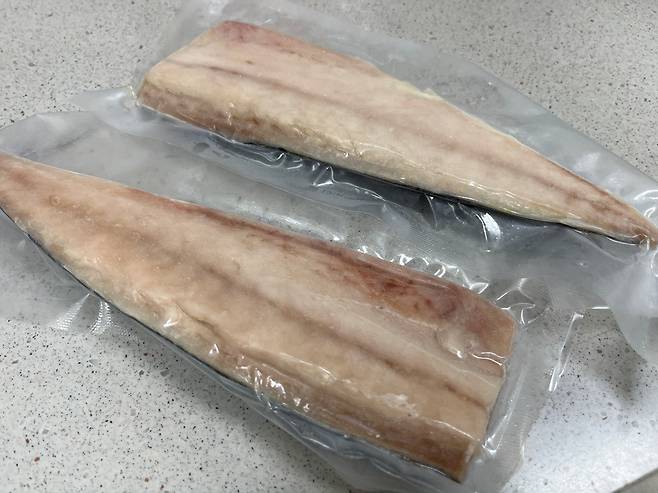 꽝꽝 언 냉동 생선, 그냥 구우면 딱딱하게 얼어서 잘 안 구워질 것만 같았는데요. 전혀 그렇지 않더라고요. 저는 손질된 냉동 고등어 꺼내서 간단히 손질 후 바로 구웠습니다.