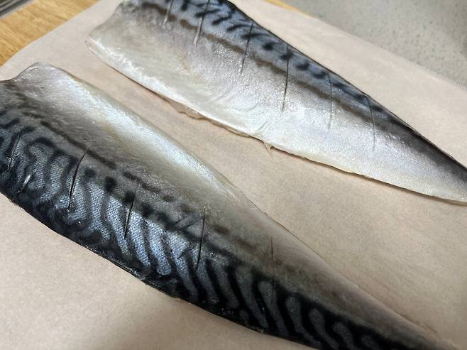 냉동 생선은 껍질에 칼집을 내주세요. 껍질이 익으면서 수축하기 때문에 칼집을 내야 껍질이 들뜨지 않고 고르게 익습니다. 또한 칼집 사이로 열이 골고루 들어가 속살까지 빠르게 익고, 비린내도 덜합니다.