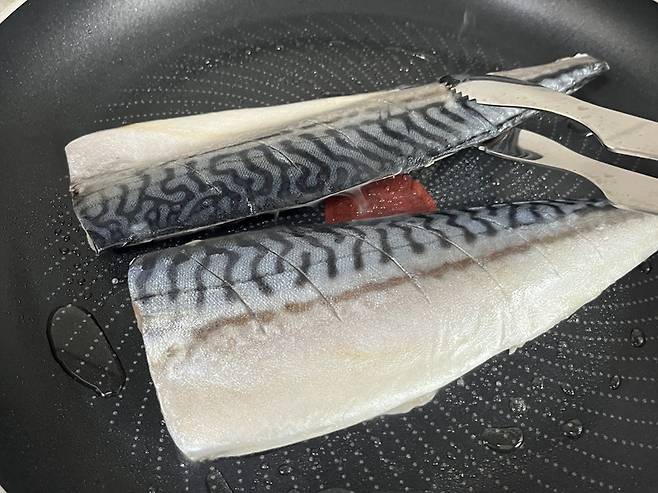 냉동 생선은 굽기 전 키친타월로 겉면을 톡톡 두드려 주세요. 표면에 남은 성에와 물기를 제거해야 비린내가 줄고, 구울 때 기름이 튀지 않습니다.