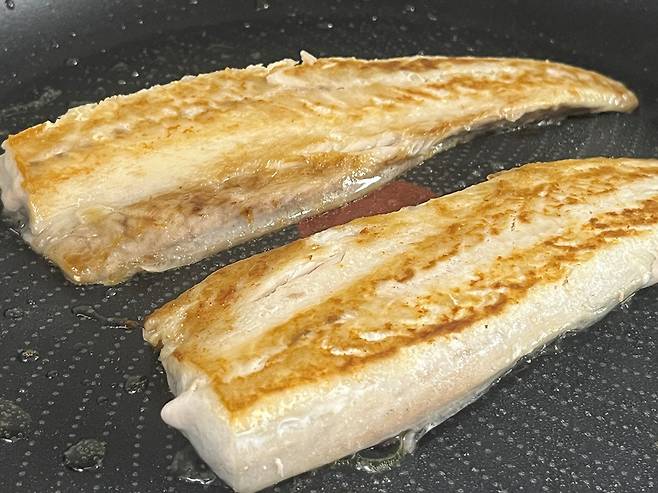 냉동 상태의 생선은 내부가 차기 때문에 너무 센 불에서 구우면 겉만 타고 속은 덜 익을 수 있습니다. 중 약불에서 한 면당 4~5분 정도 익힌 후 뒤집으세요. 뒤집개나 집게로 껍질을 누르듯이 살짝 눌러주면 생선 모양이 뒤틀리지 않고 바르게 구워집니다.