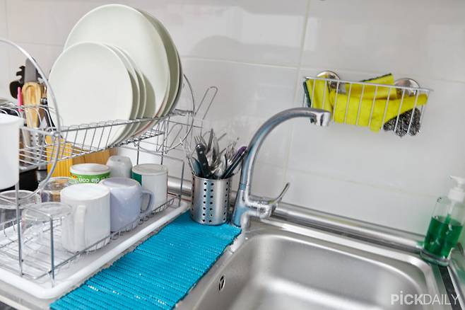 대신 식초와 베이킹소다는 함께 섞지 말고 따로 사용하는 것이 더 효과가 좋다. 세척이 끝난 후엔 수세미를 걸어두거나 물빠짐이 좋은 곳에 올려두어 건조까지 확실히 해주는 것이 세균 증식을 막을 수 있다.