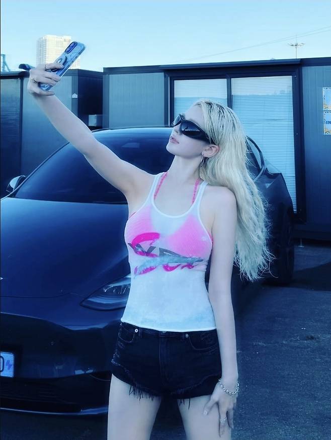 은은하게 드러나는 바디 실루엣과 키치한 색감은 전소미 특유의 톡톡 튀는 스타일링 센스를 극대화하며, 물놀이 후에도 무대 위처럼 빛나는 존재감을 증명했습니다.