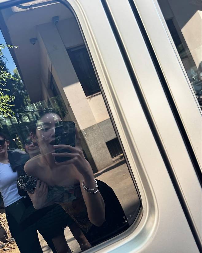 이어진 반사 셀카 컷에선 또 다른 매력을 발산했다. 유리창에 비친 차주영은 과감한 오프숄더 드레스를 입고 클러치를 안은 채 카메라를 응시한다.