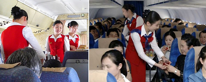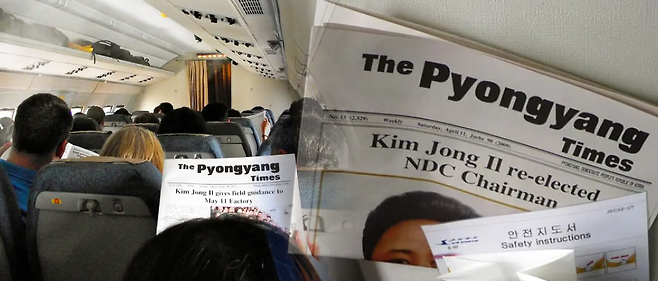 비행기가 출발하기 전, 승무원들은 기내 탑승객들에게 북한 선전, 선동 내용을 실은 '로동신문' 영문판을 나눠줬다고 하는데요. 비행기 이륙과 착륙 시에는 북한 노동 혁명 노래와 군가들을 틀어줬다고 합니다.