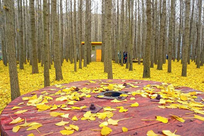 도리마을 은행나무 숲은 원래 묘목판매장(은행나무 묘목장)이었던 공간이었습니다. 그곳이 문 닫으면서 묘목용으로 심어진 은행나무들이 이식되지 않고 자라면서 자연스럽게 숲이 된 것이 이 지역만의 이야기입니다.