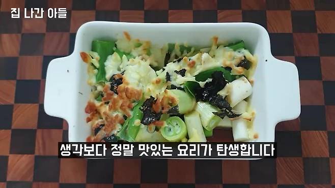 김가루 한 줌 + 치즈 듬뿍 뿌리기