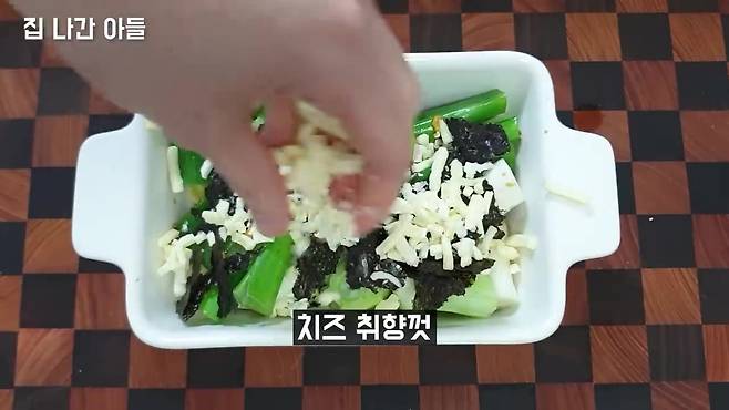 김가루 한 줌 + 치즈 듬뿍 뿌리기