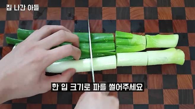뿌리 제거 후 한입 크기로 썰기