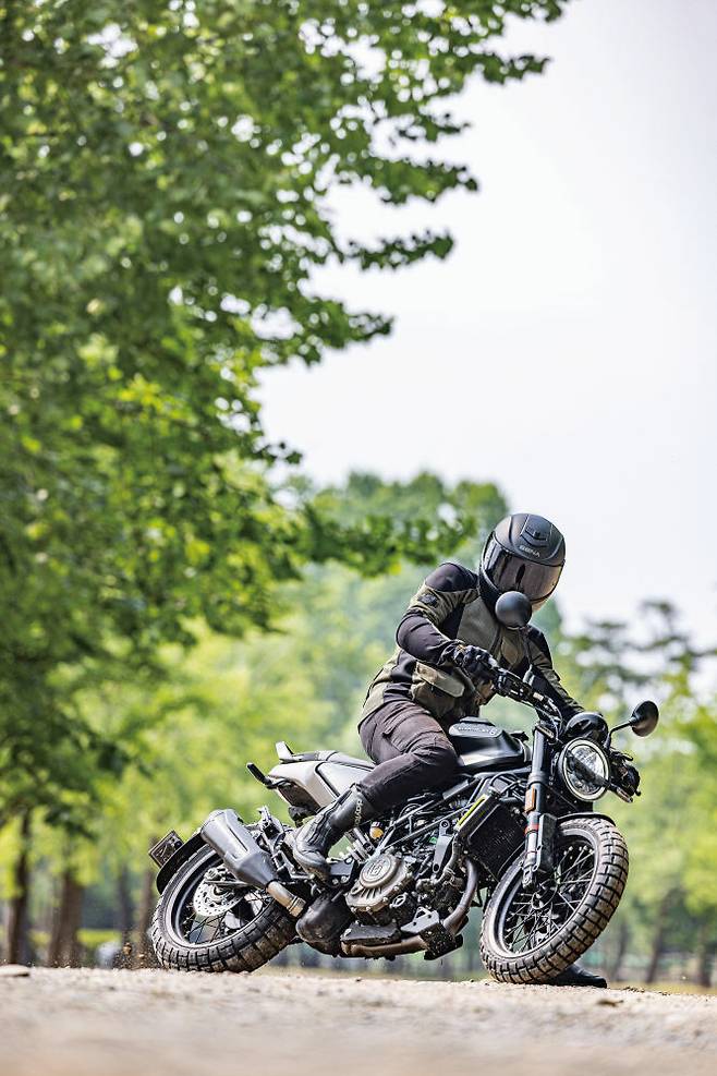 신장 178cm의 라이더가 앉았을 때 핸들 바, 시트, 풋 패그의 위치가 적절했다. 일반적인 125cc들에 비해 넉넉한 포지션이 취해진다. 상위 모델인 스바르트필렌 401과 차체를 공유하는 덕분인데 만만한 출력에 편안한 포지션이 어울리니 더 과감하게 다룰 수 있다. 바로 오프로드로 향했다. 스크램블러니까.