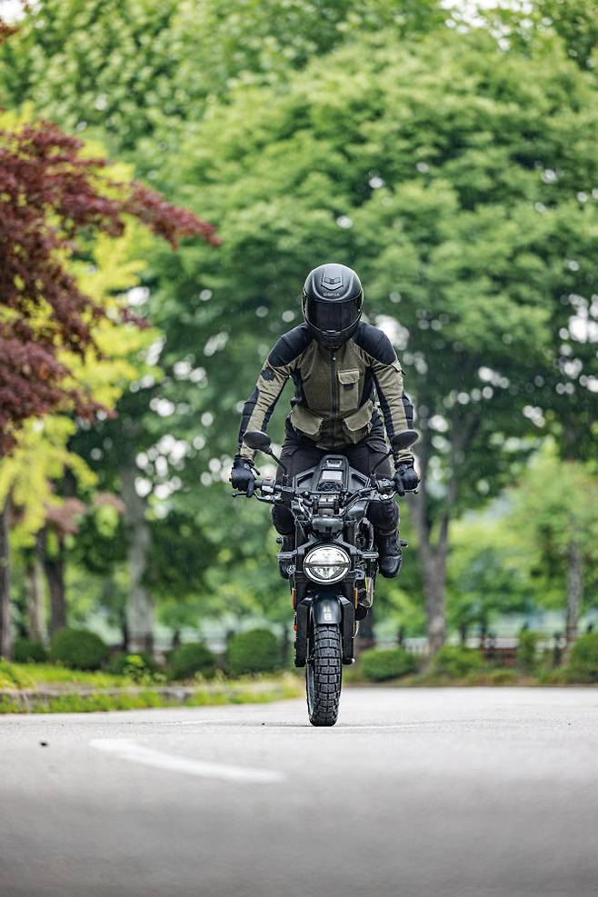 일단 시트고는 수치상 835mm인데 85kg의 성인 남성이 탑승하면 리어 쇽이 주저앉아 발착지성이 좋다. 초보 라이더에게 양발이 닿느냐의 여부는 꽤 중요하다. 프리로드가 느슨한 편이기 때문에 대부분 부담이 적을 것이다. 더불어 연료를 제외한 차량 무게가 146kg으로 가볍다는 것도 큰 장점이다. 처음 스로틀을 열면 당황스러울 정도로 부드럽게 가속된다. ‘최고출력 15마력이니까 이 정도 가속력을 발휘할 거야!’라는 예상은 크게 빗나간다. 작은 악동을 예상했는데 성숙한 영재 같다. 라이더가 스로틀을 확 열어도 rpm은 느긋하게 상승하며 매끄럽게 가속된다.